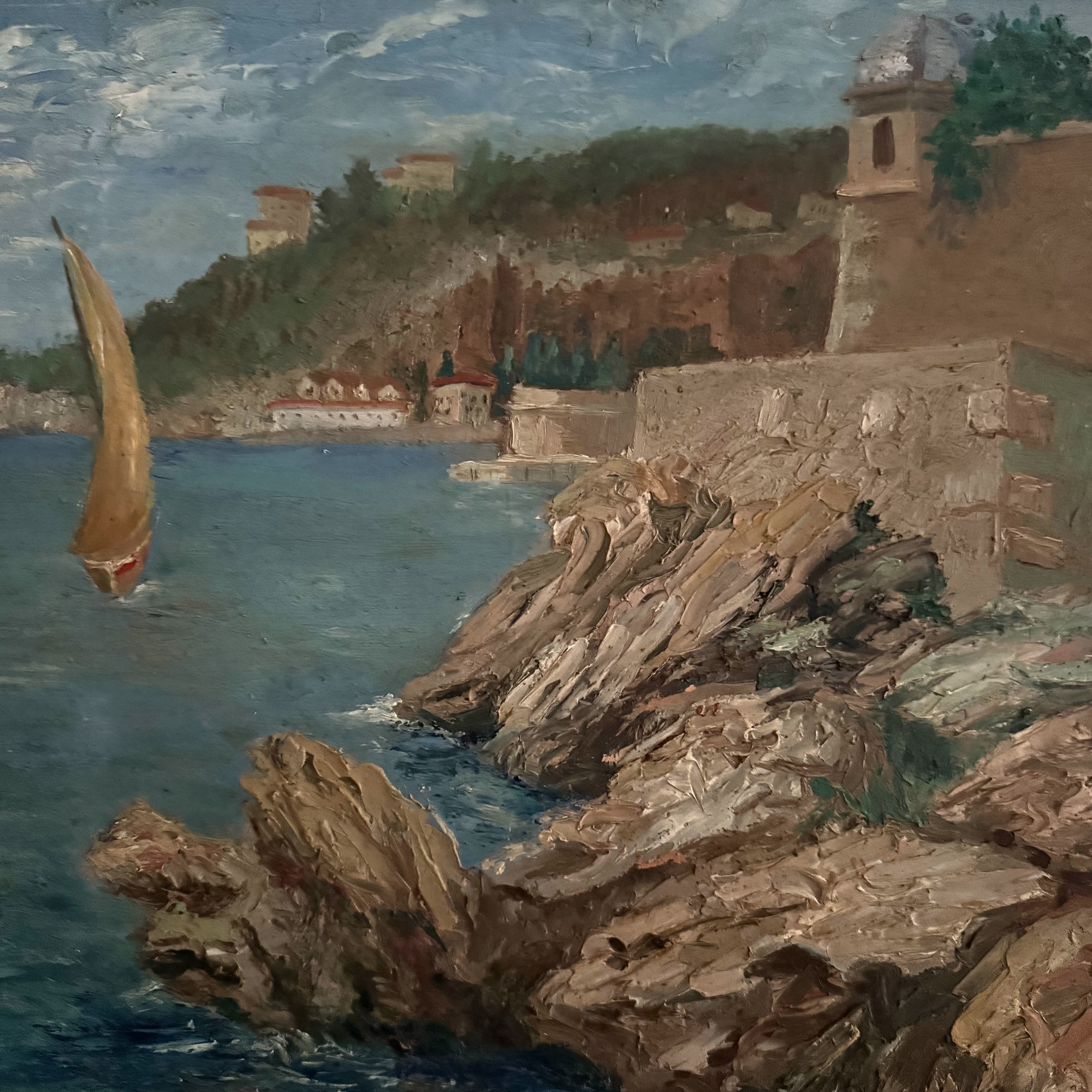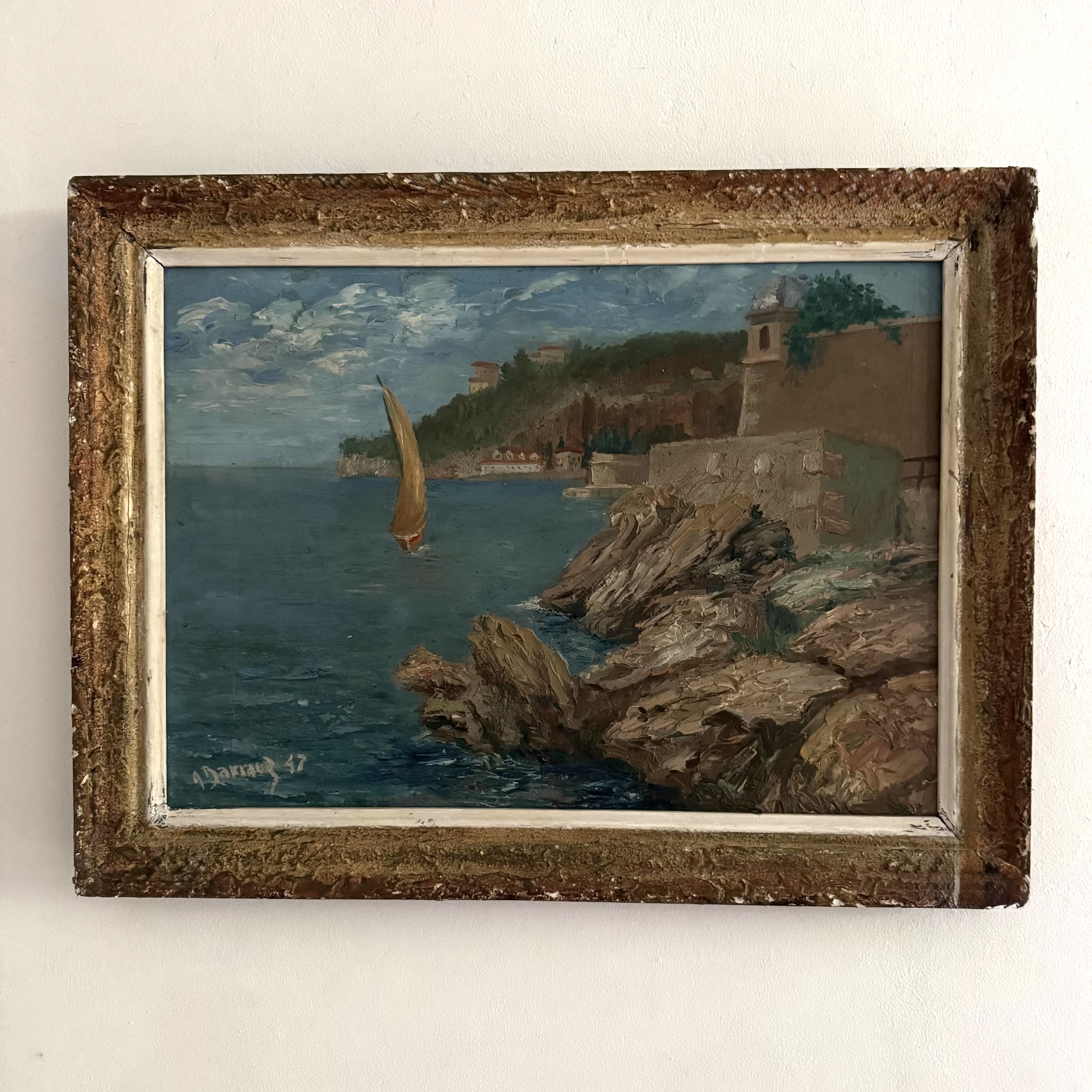 Wind In The Sails A charming painting sail boat close to shore. Possibly southern France In a distressed textured frame. C 1947 H: 41 cms W: 54 cms D: 3 cms £450 Share this item Email Twitter Facebook Pinterest Enquire about this item Your name Your email address (required) Your phone number Your location Any comments? Data use consent (required) I consent to my data being processed as per the Privacy Policy