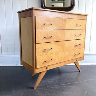 1960 Chest of Drawers A 1960s French chest of drawers with matched oak veneer, brass handles and long bolt securing the legs front to back. H: 88 cms W: 90 cms D: 40 cms £650 Share this item Email Twitter Facebook Pinterest Enquire about this item Your name Your email address (required) Your phone number Your location Any comments? Data use consent (required) I consent to my data being processed as per the Privacy Policy