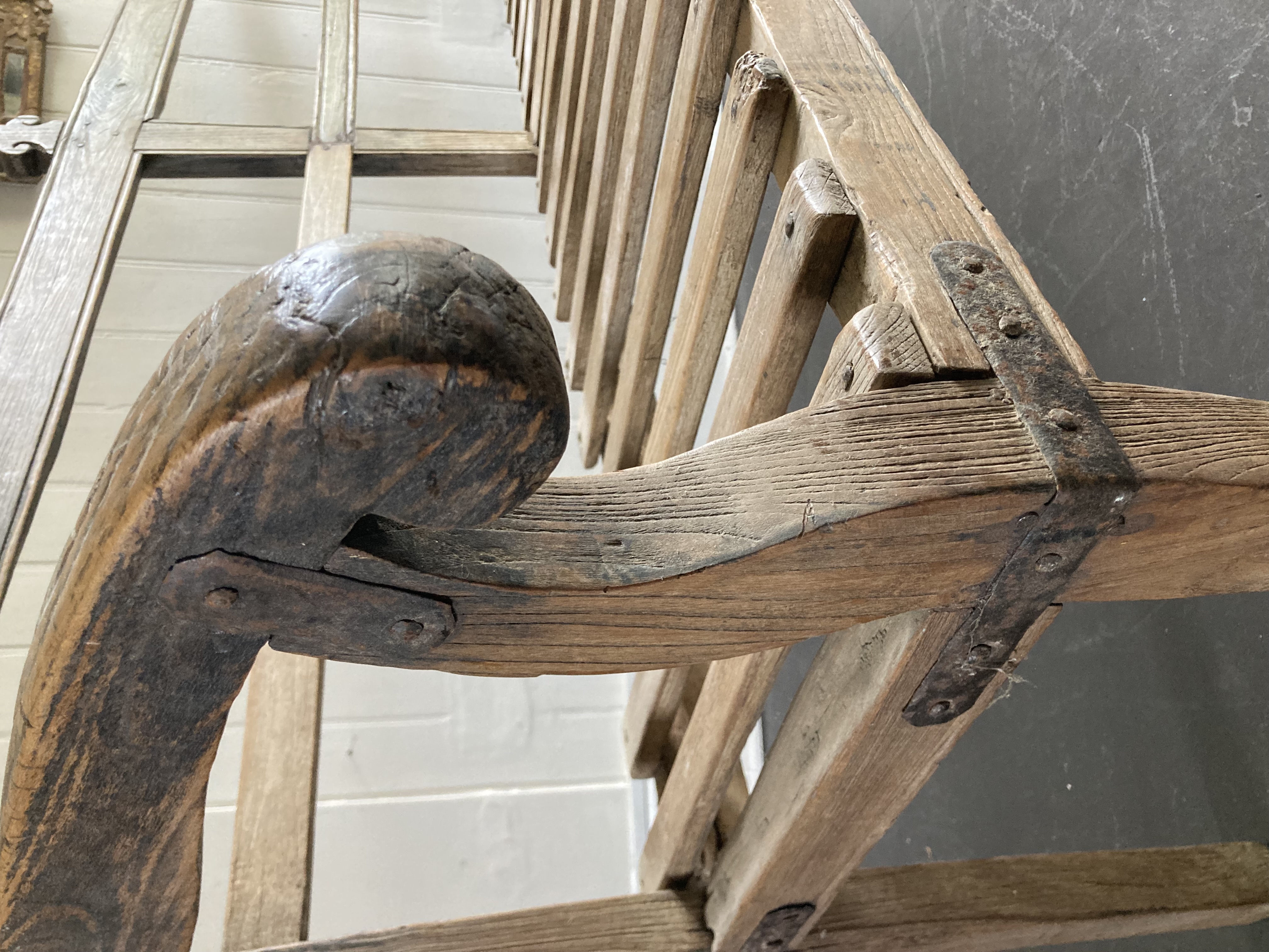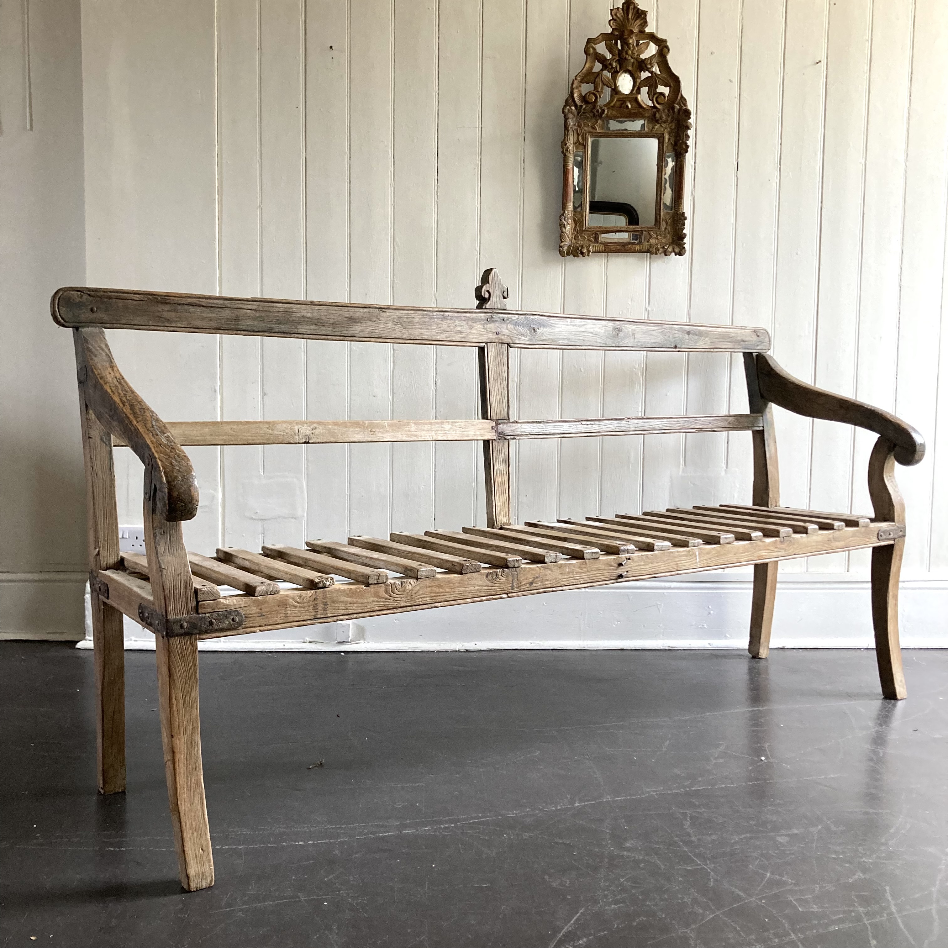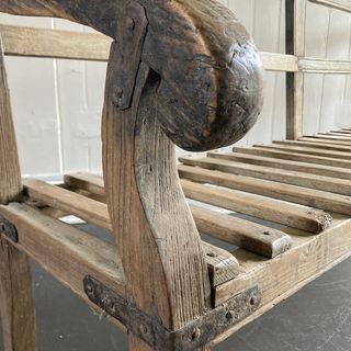 19th Century Rustic Oak Bench A 19th century French rustic slatted long oak bench with metal straps and Fleur de Lis decoration H: 107 cms W: 193 cms D: 57 cms £1100 Share this item Email Twitter Facebook Pinterest Enquire about this item Your name Your email address (required) Your phone number Your location Any comments? Data use consent (required) I consent to my data being processed as per the Privacy Policy