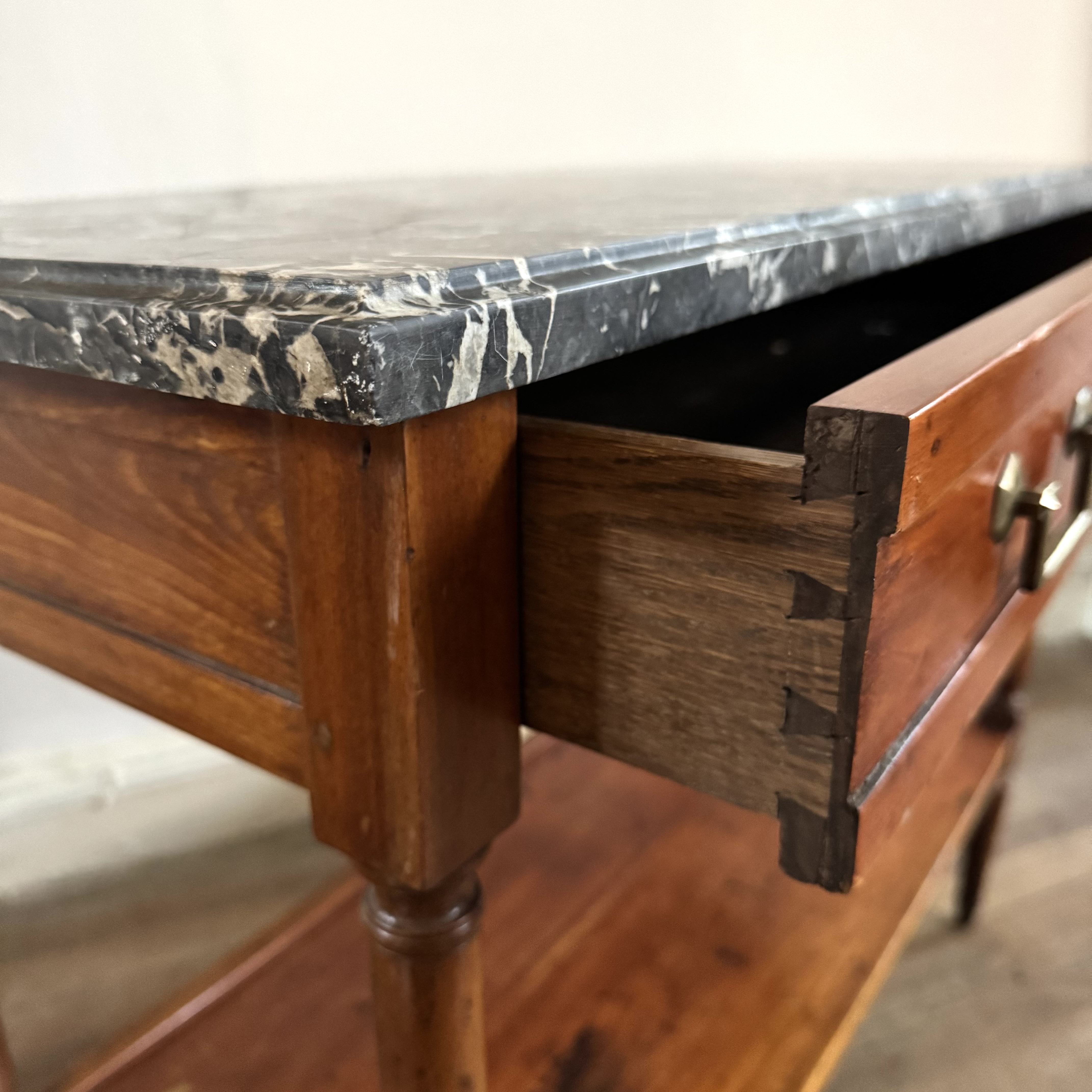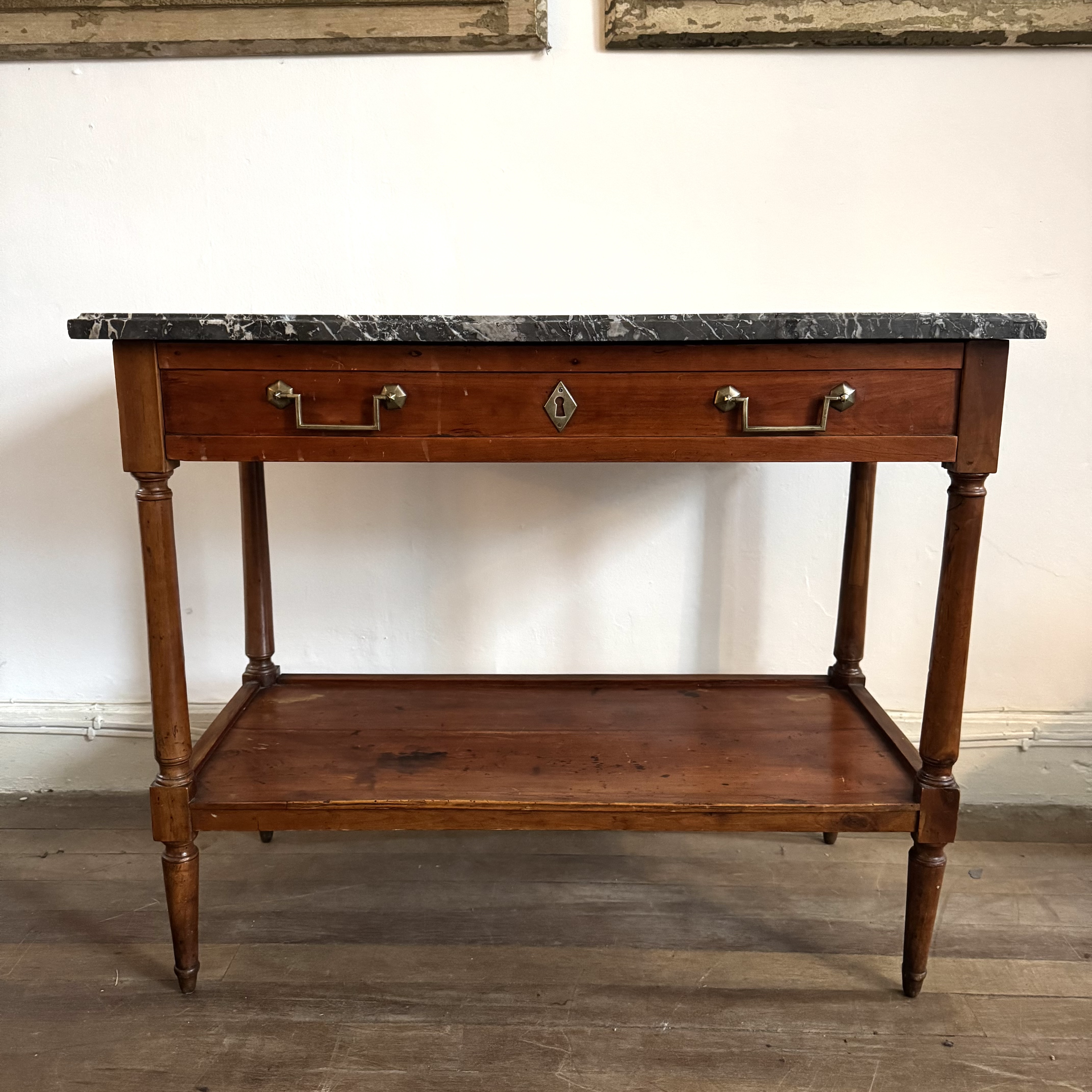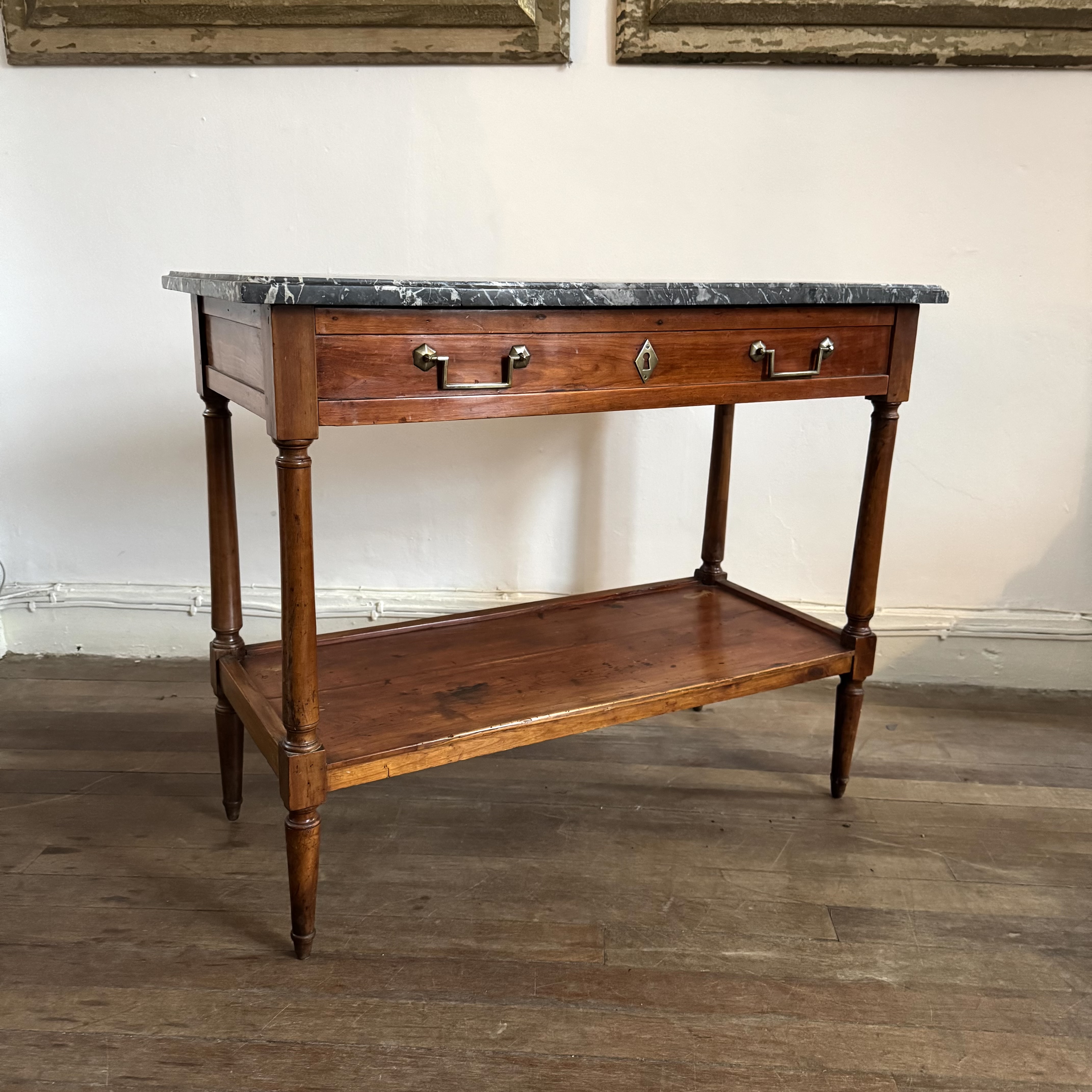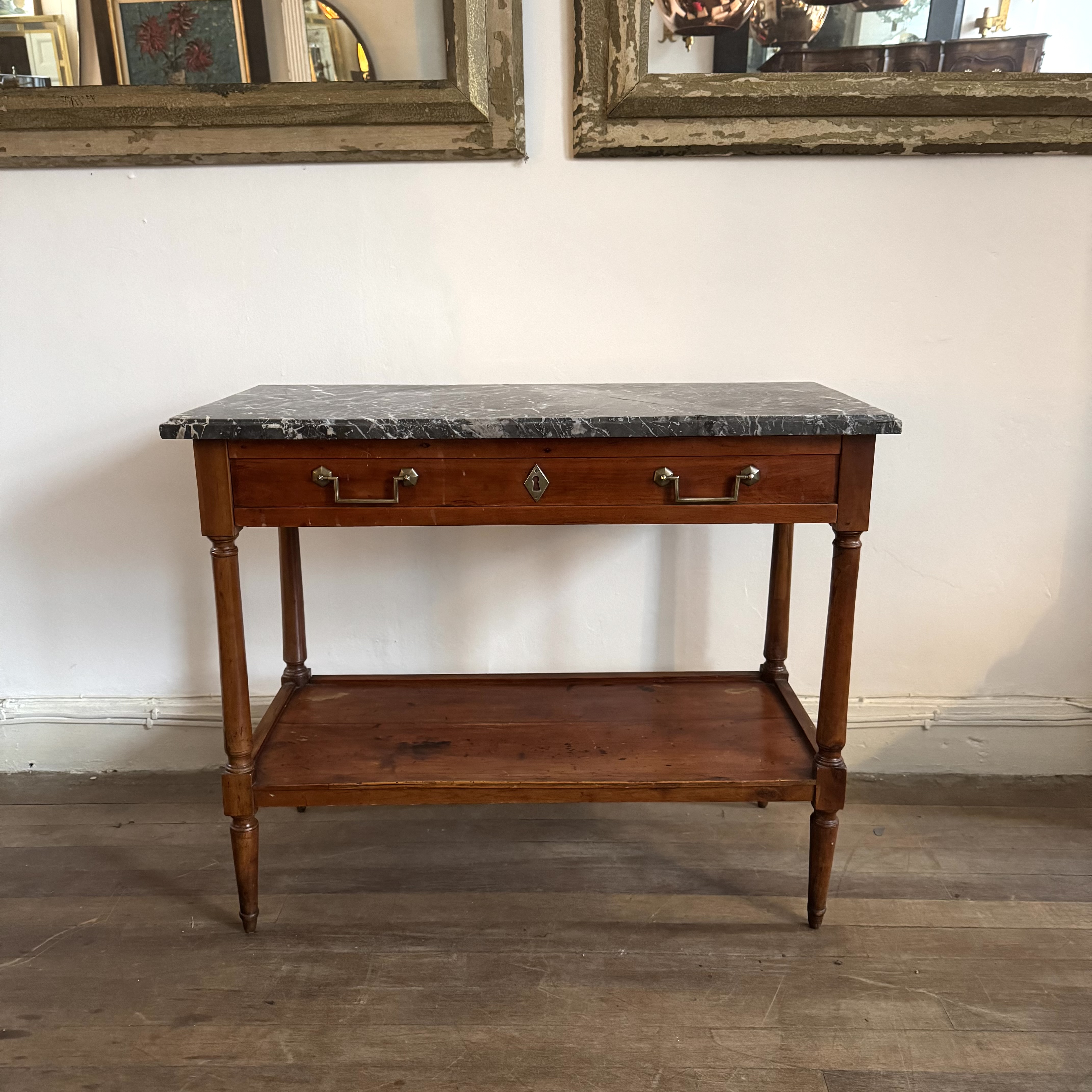 French Cherrywood Console Table 19th century French cherrywood console table with marble top, long single drawer brass handles and standing on round tapered legs H: 72 cms W: 87 cms D: 40 cms £1100 Share this item Email Twitter Facebook Pinterest Enquire about this item Your name Your email address (required) Your phone number Your location Any comments? Data use consent (required) I consent to my data being processed as per the Privacy Policy