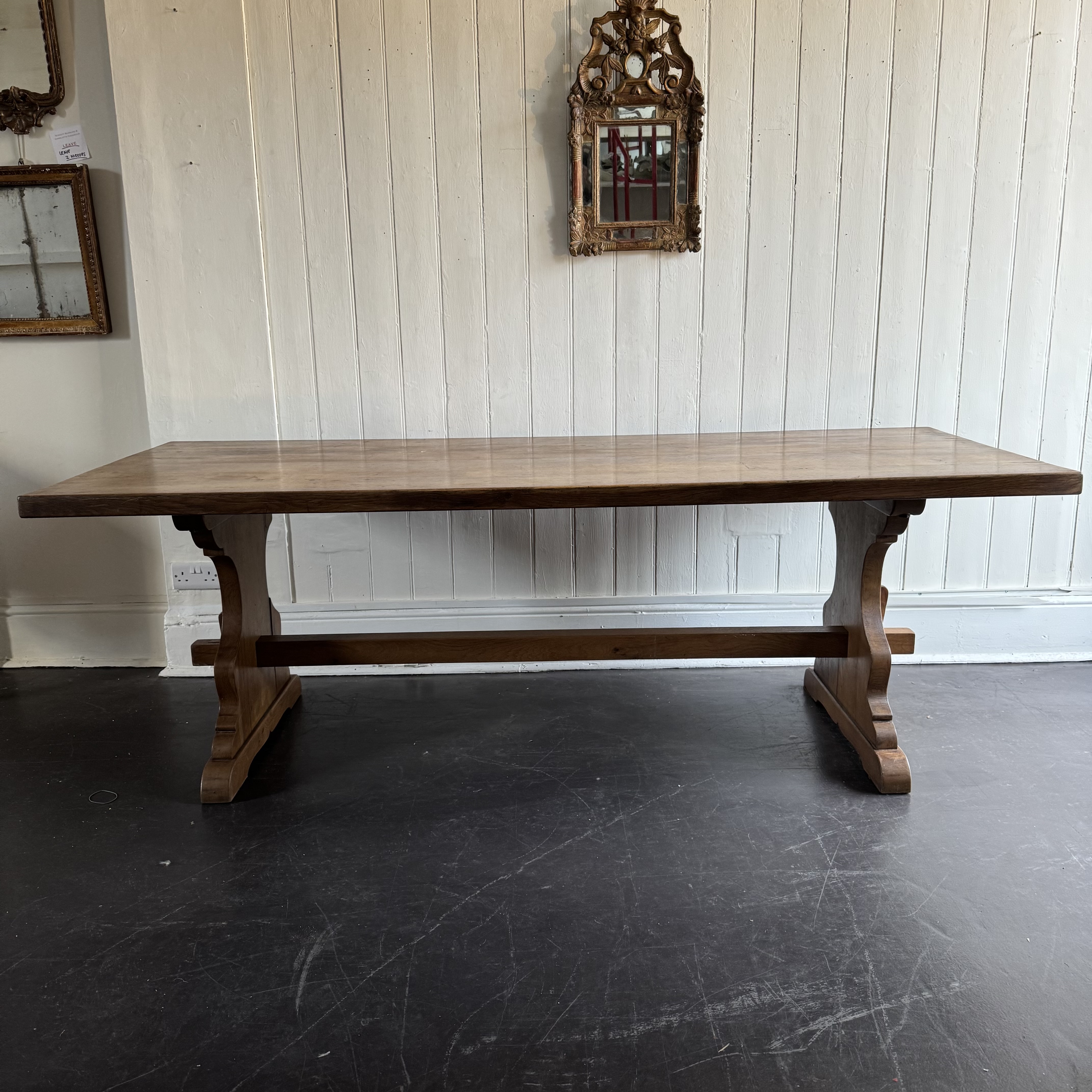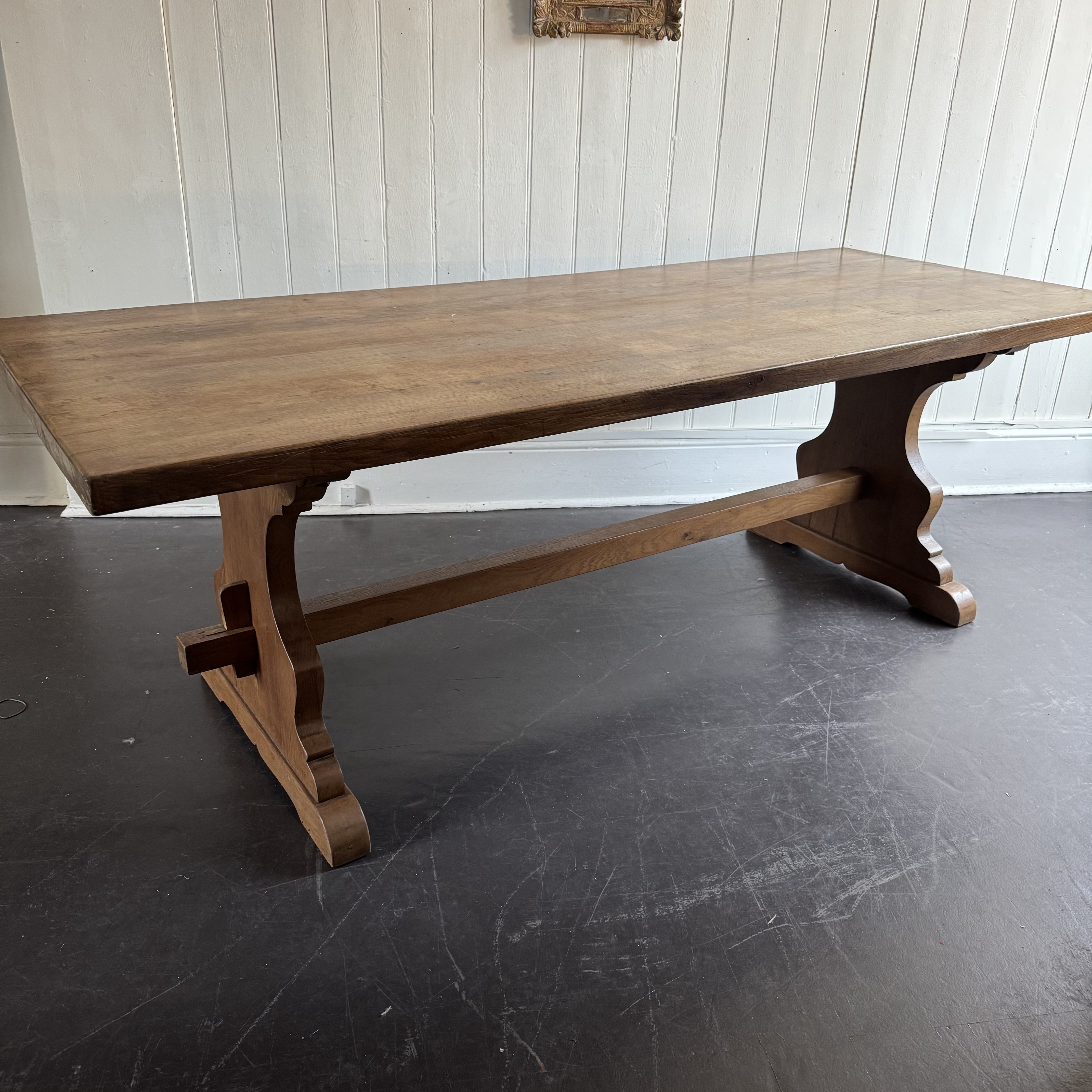 French Oak Monastery Table Large19th century French oak monastery trestle table. H: 75.5 cms W: 220 cms D: 89 cms £2450 Share this item Email Twitter Facebook Pinterest Enquire about this item Your name Your email address (required) Your phone number Your location Any comments? Data use consent (required) I consent to my data being processed as per the Privacy Policy