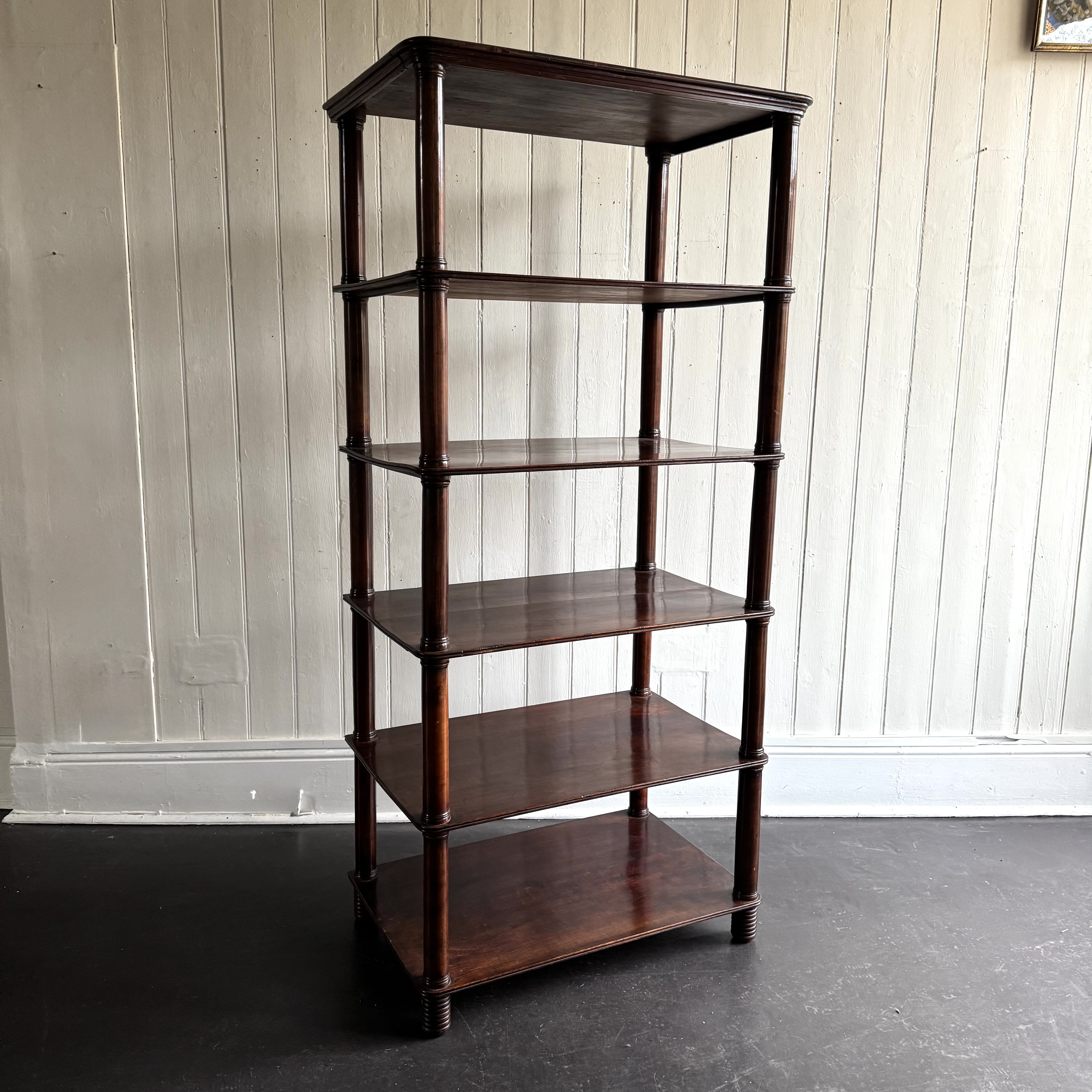 Mahogany Etagere A tall six tier mahogany Etagere on bobbin feet with rich colour. 19th century English H: 177 cms W: 82 cms D: 53 cms Sold Share this item Email Twitter Facebook Pinterest Enquire about this item Your name Your email address (required) Your phone number Your location Any comments? Data use consent (required) I consent to my data being processed as per the Privacy Policy