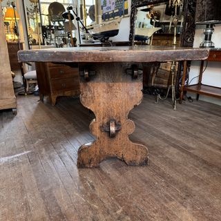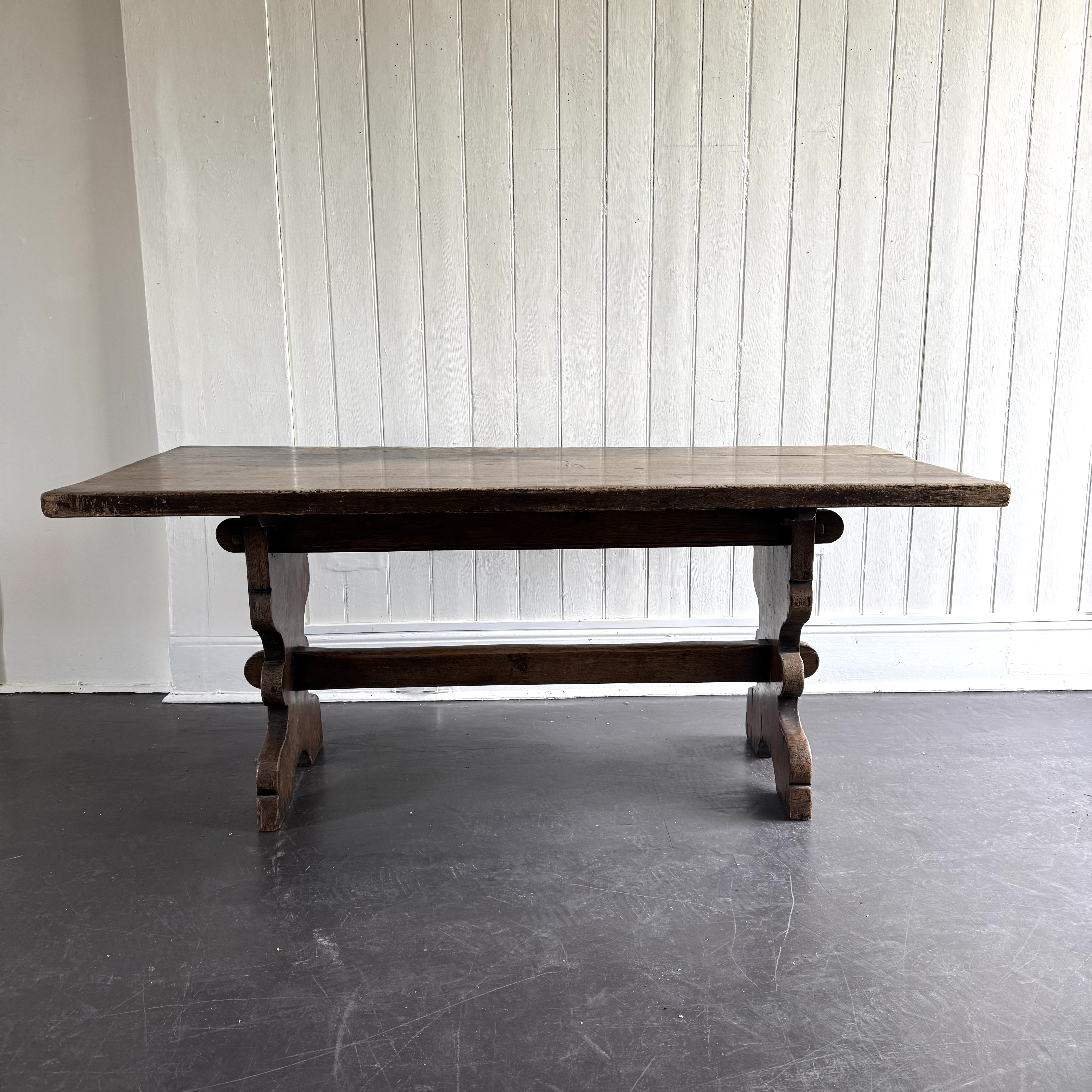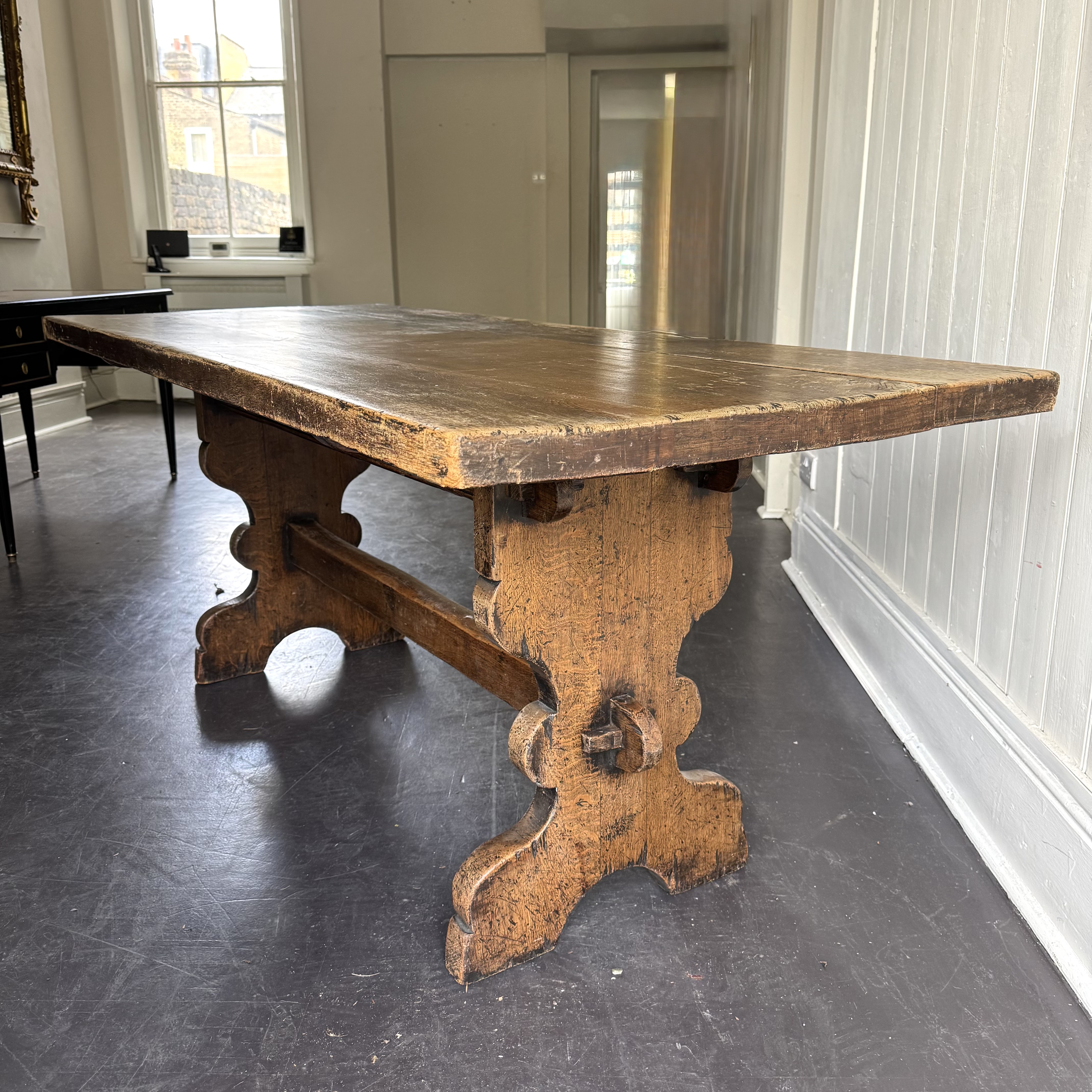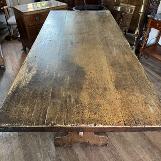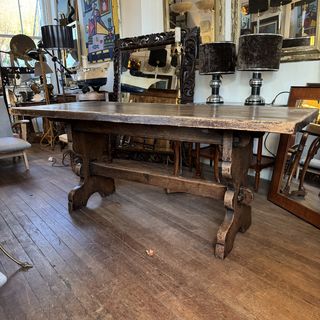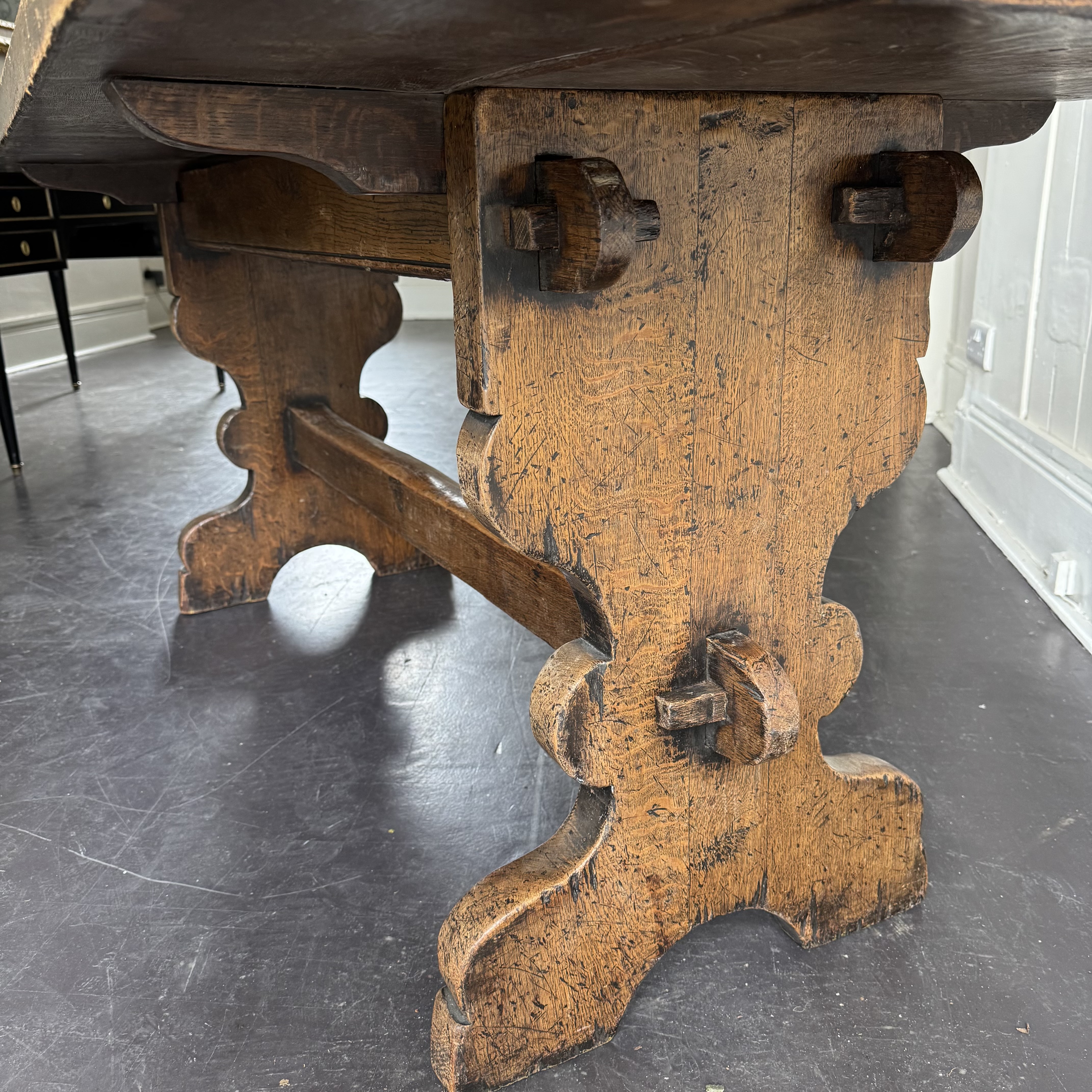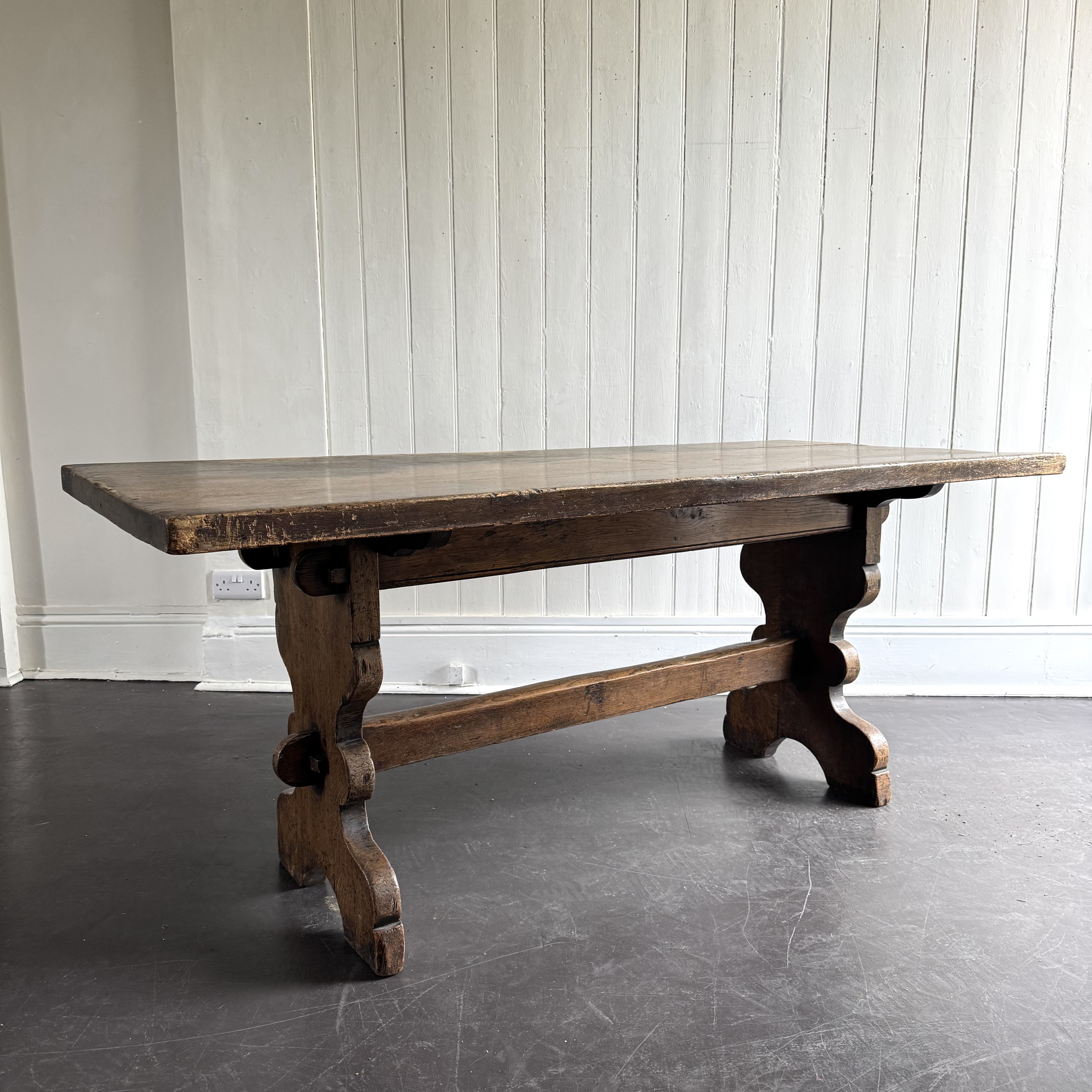 Oak Trestle Table 19th century English oak trestle table lovely rich colour to the base and years of use on top. H: 77 cms W: 183 cms D: 80 cms £1950 Share this item Email Twitter Facebook Pinterest Enquire about this item Your name Your email address (required) Your phone number Your location Any comments? Data use consent (required) I consent to my data being processed as per the Privacy Policy