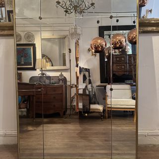 1950s Bistro Mirror A mid century French sectional bistro mirror with brass rose decoration. In thin gilt frame C.1950 H140cms W: 100 cms D: 3 cms £1150 Share this item Email Twitter Facebook Pinterest Enquire about this item Your name Your email address (required) Your phone number Your location Any comments? Data use consent (required) I consent to my data being processed as per the Privacy Policy