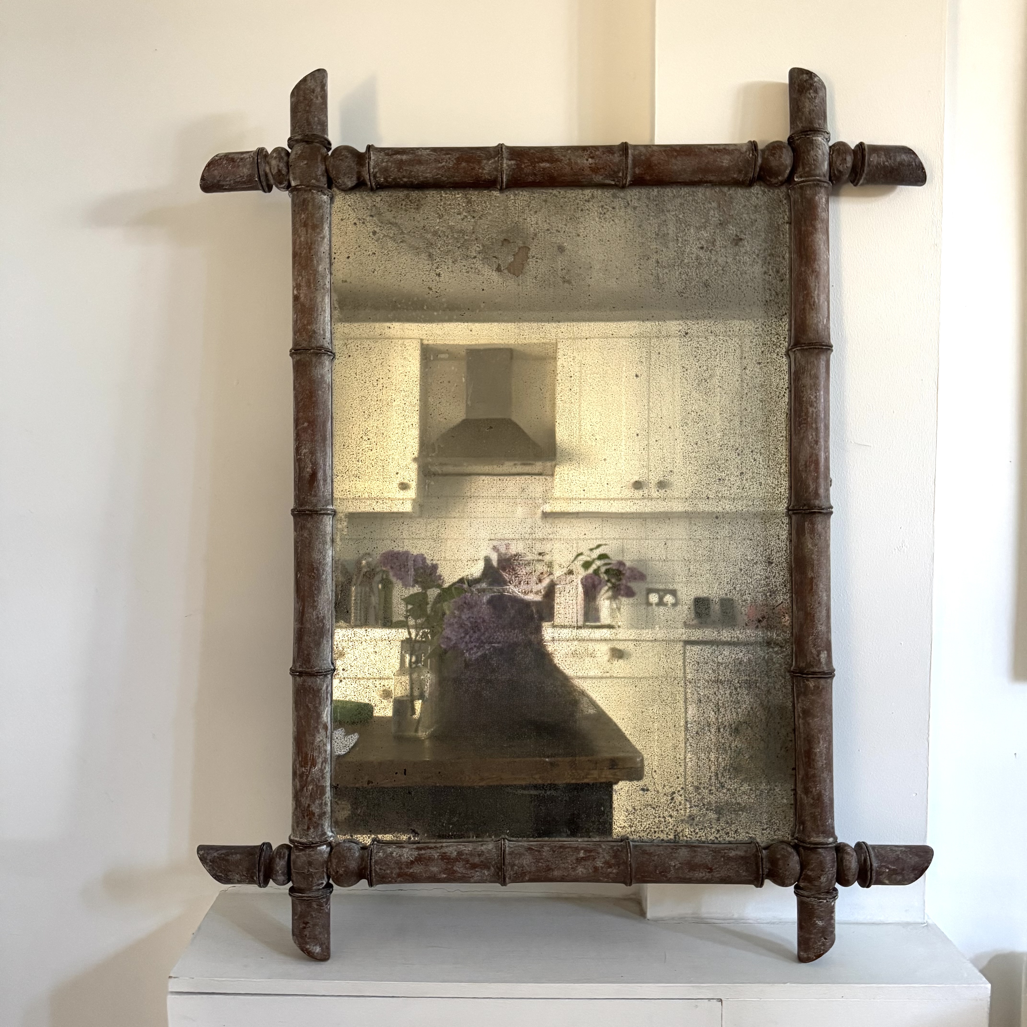 Faux Bamboo Mirror 19th century French faux bamboo mirror with a slightly white washed frame and beautifully distressed grey mirror plate H: 75 cms W:62 cms D:3.5 cms £550 Share this item Email Twitter Facebook Pinterest Enquire about this item Your name Your email address (required) Your phone number Your location Any comments? Data use consent (required) I consent to my data being processed as per the Privacy Policy