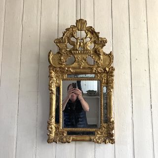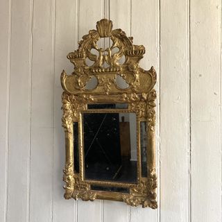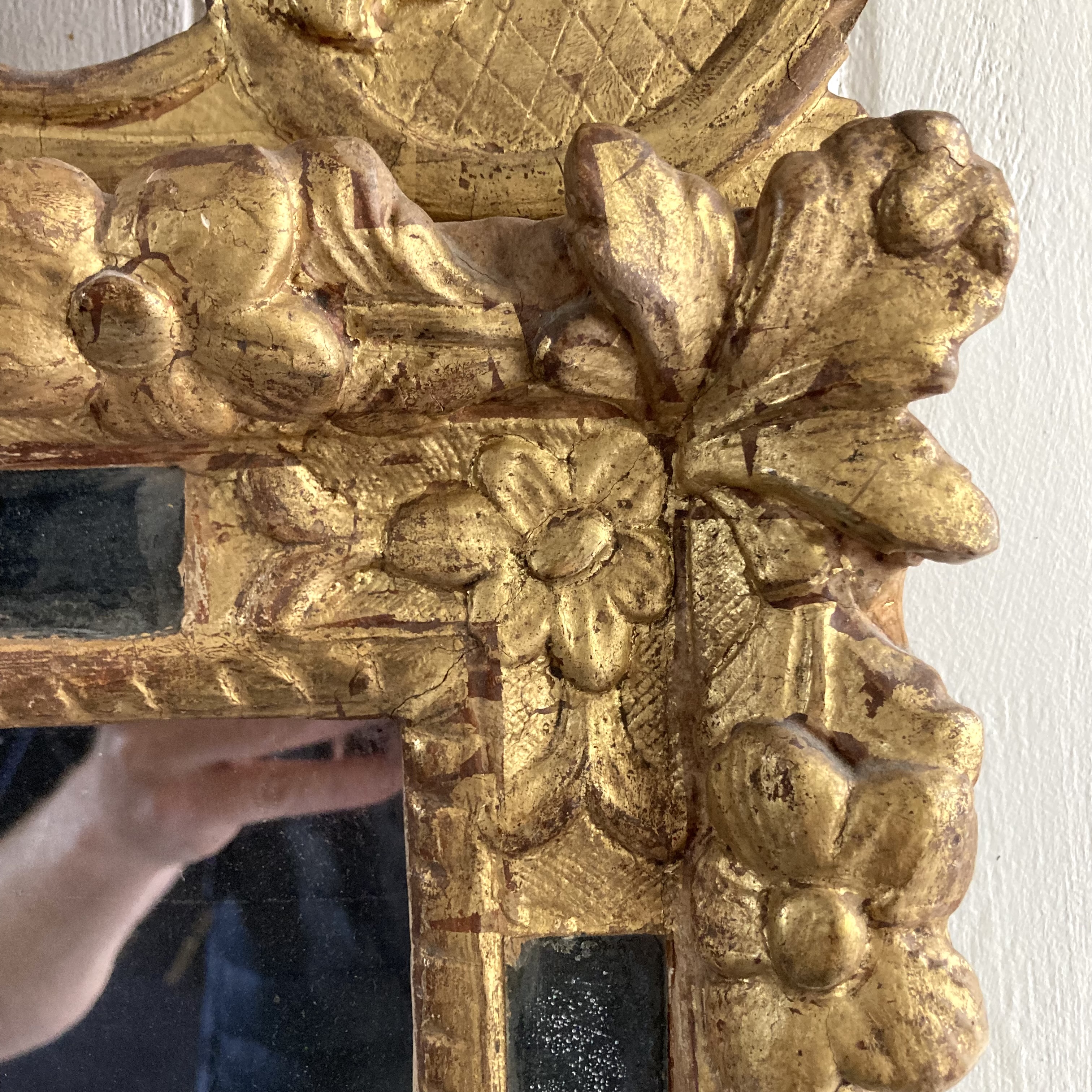 A French 18th Century Regency period gilt wood mirror, decorated with doves and sunflowers, original mirror on the outside slip, slight crack right panel, later central mirror plate. Circa. 1790