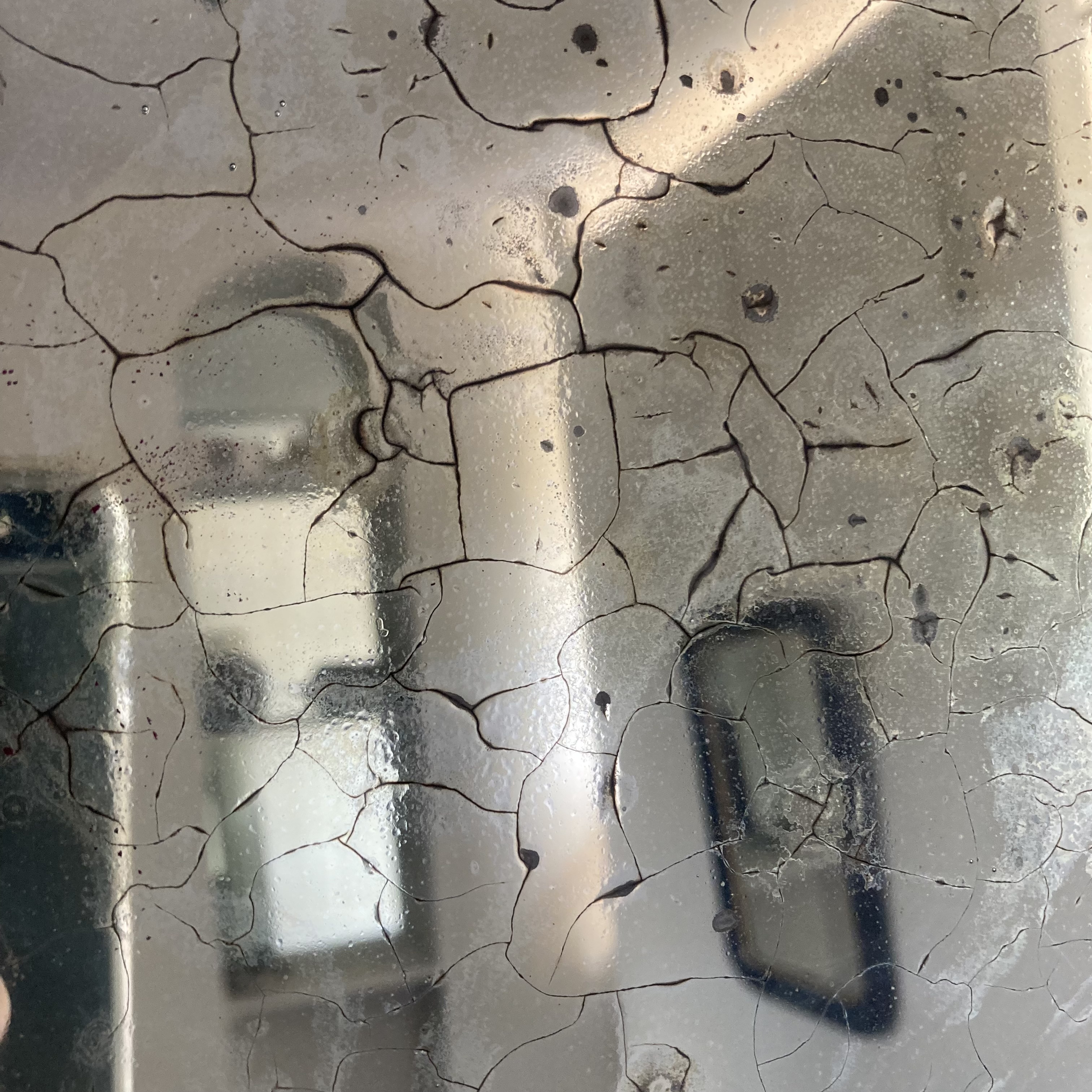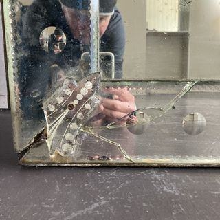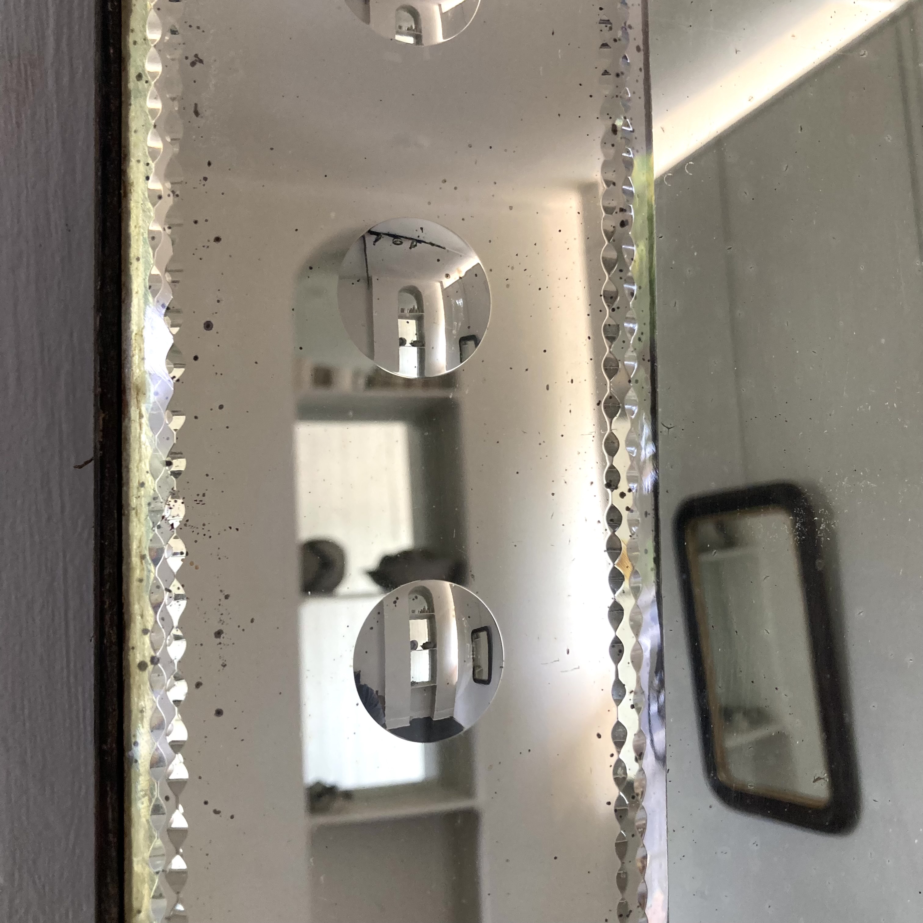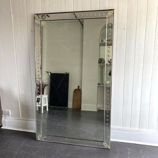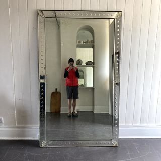 A huge late 19th century Venetian bistro mirror with brilliant cut frames and bubbles. Slight crack in the lower rail and bottom ears. Original mirror plate with some foxing and original backing. France
