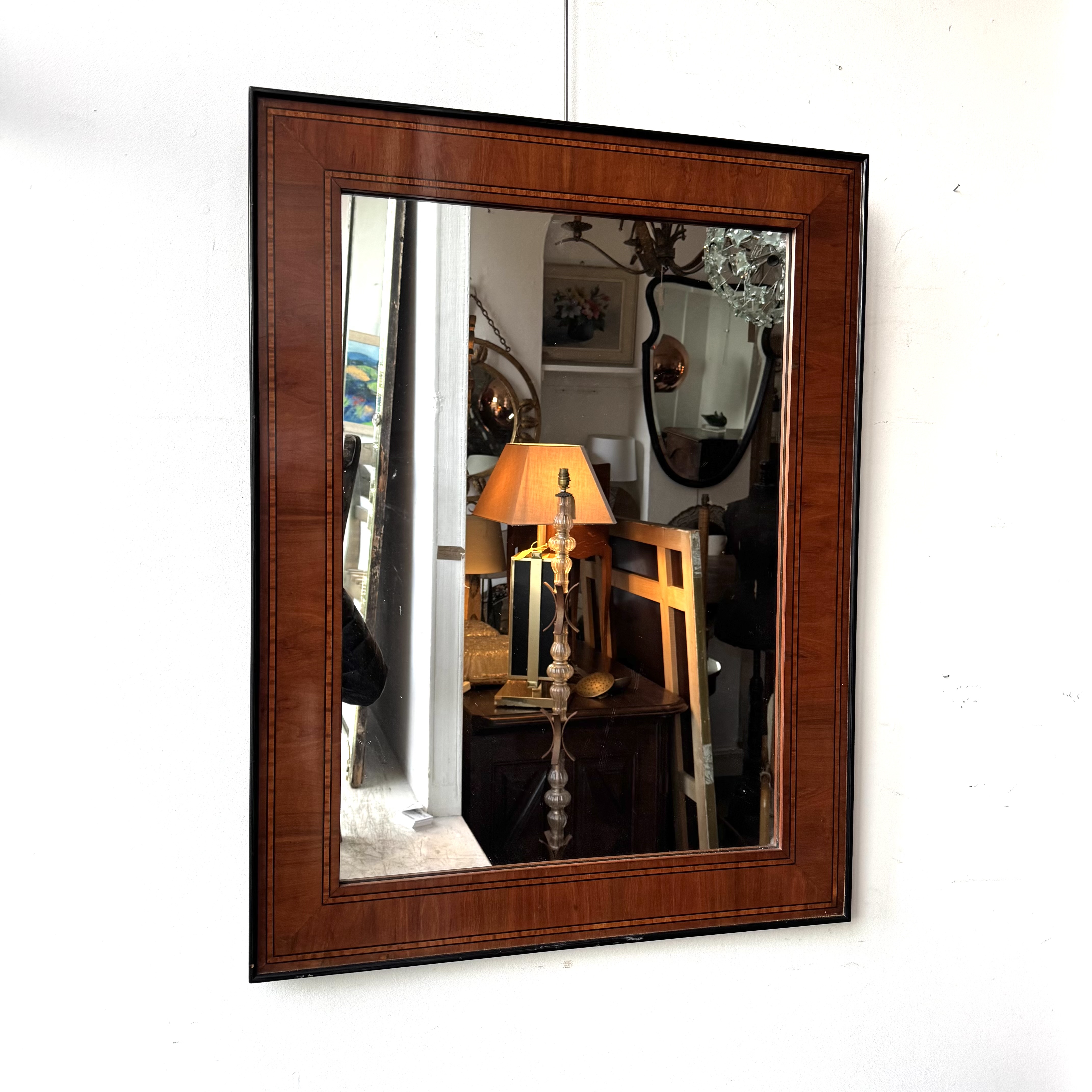 Inlaid Mahogany Mirror An inlaid mahogany mirror with boxwood and ebony banding with an ebonised outer slip. Made in Spain. 1960s H: 88 cms W: 67,5 cms D: 2.5 cms £680 Share this item Email Twitter Facebook Pinterest Enquire about this item Your name Your email address (required) Your phone number Your location Any comments? Data use consent (required) I consent to my data being processed as per the Privacy Policy